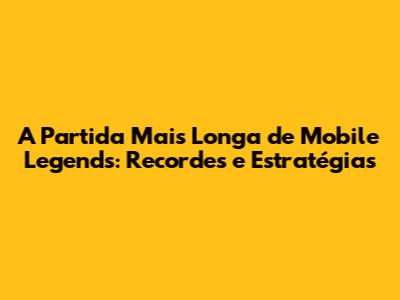 A Partida Mais Longa De Mobile Legends: Recordes E Estratégias