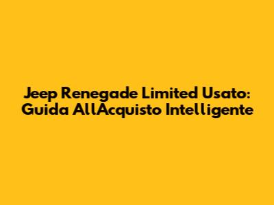 Jeep Renegade Limited Usato: Guida All'Acquisto Intelligente