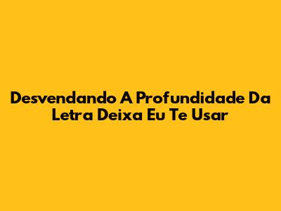 Desvendando A Profundidade Da Letra 'Deixa Eu Te Usar'
