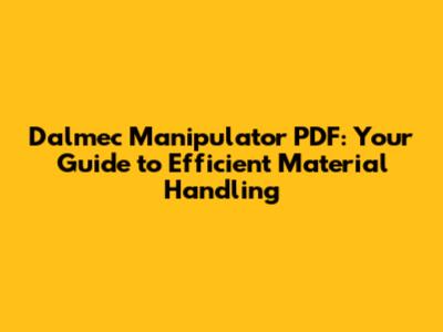 Key Topics Covered in Dalmec Manipulator PDFs