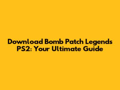 Download Bomb Patch Legends PS2: Your Ultimate Guide