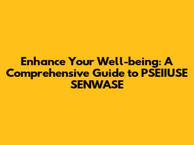 Enhance Your Well-being: A Comprehensive Guide To PSEIIUSE SENWASE
