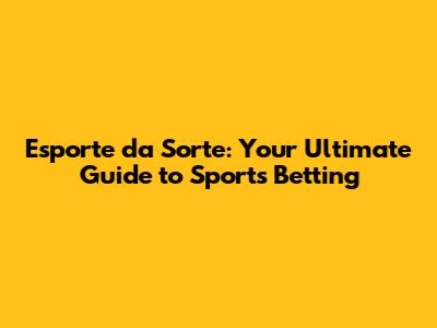 Esporte Da Sorte: Your Ultimate Guide To Sports Betting