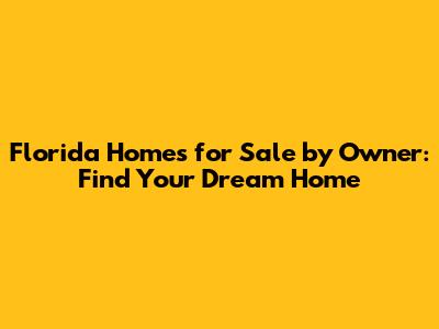 Florida Homes For Sale By Owner: Find Your Dream Home