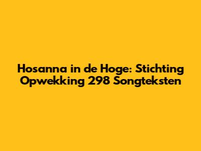 Hey guys! Today, we're diving deep into the spiritual sounds of Stichting Opwekking 298, specifically the powerful song "Hosanna in de Hoge". This track has resonated with so many, and for good reason! It’s not just a song; it’s an anthem of praise, a declaration of faith, and a reminder of God’s majesty. If you’re looking for the complete lyrics to this uplifting piece, you’ve come to the right place. We’re going to break down what makes this song so special, explore its biblical roots, and of course, provide you with the full text so you can sing along with all your heart. Get ready to feel the spirit move as we unpack the beauty and meaning behind "Hosanna in de Hoge."