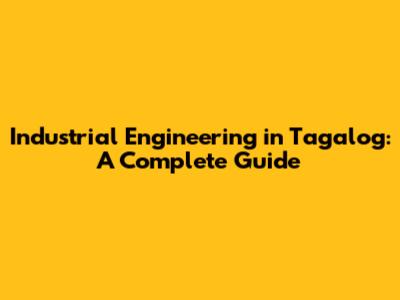 Industrial Engineering In Tagalog: A Complete Guide