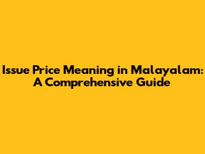 Issue Price Meaning In Malayalam: A Comprehensive Guide