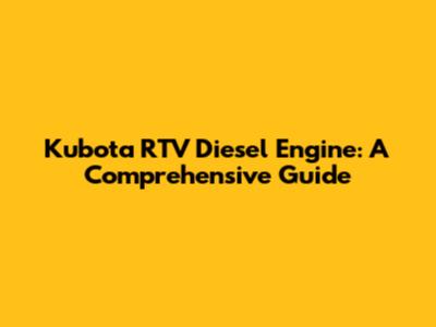 Kubota RTV Diesel Engine: A Comprehensive Guide