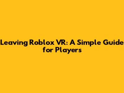 Leaving Roblox VR: A Simple Guide For Players