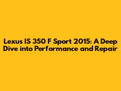 Hey guys! Let's talk about the Lexus IS 350 F Sport 2015. This car is a real gem, known for its sporty performance, sleek design, and the luxury you'd expect from Lexus. If you're considering buying one, already own one, or just love cars, this article is for you. We're going to dive deep into its specs, performance, and some common repair issues you might encounter. Buckle up, it's going to be a fun ride!