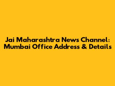 Jai Maharashtra News Channel: Mumbai Office Address & Details