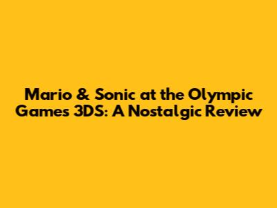 Mario & Sonic At The Olympic Games 3DS: A Nostalgic Review