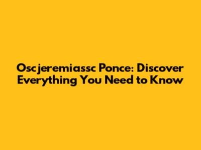 Oscjeremiassc Ponce: Discover Everything You Need To Know