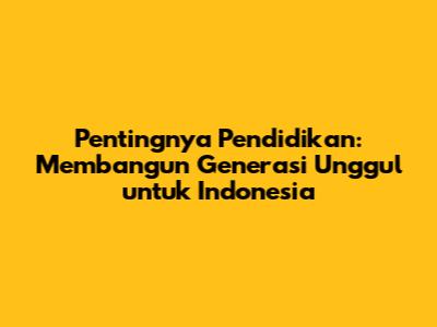 Pendidikan adalah kunci untuk membangun generasi unggul yang akan memimpin Indonesia menuju masa depan yang lebih baik. Dengan investasi yang tepat pada pendidikan, kita dapat memastikan bahwa generasi muda kita memiliki keterampilan, pengetahuan, dan karakter yang dibutuhkan untuk menghadapi tantangan zaman dan berkontribusi pada kemajuan bangsa. Mari kita dukung pendidikan di Indonesia, karena pendidikan adalah investasi terbaik untuk masa depan kita semua. Semangat pseosclmsse selaguscse nasional bagimu negeri harus terus membara dalam setiap langkah kita untuk memajukan pendidikan di Indonesia. Dengan pendidikan yang berkualitas, kita dapat membangun Indonesia yang lebih baik, lebih maju, dan lebih sejahtera.