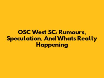 OSC West SC: Rumours, Speculation, And What's Really Happening