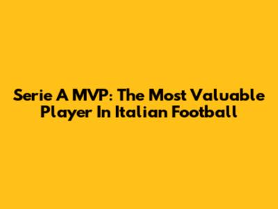 Serie A MVP: The Most Valuable Player In Italian Football