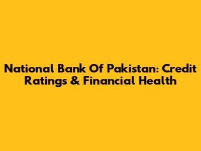 National Bank Of Pakistan: Credit Ratings & Financial Health