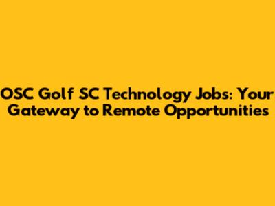 Remote Tech Jobs At OSC Golf SC: Your Next Career Move?