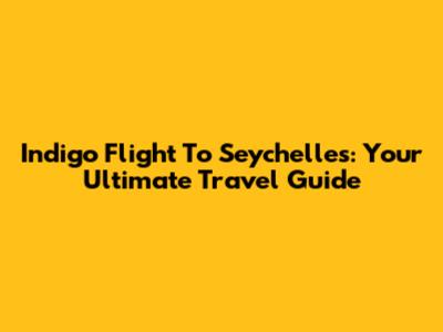 Indigo Flight To Seychelles: Your Ultimate Travel Guide