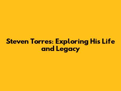 Steven Torres: A Deep Dive Into His Life And Work