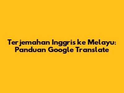 Terjemahan Inggris Ke Melayu: Panduan Google Translate