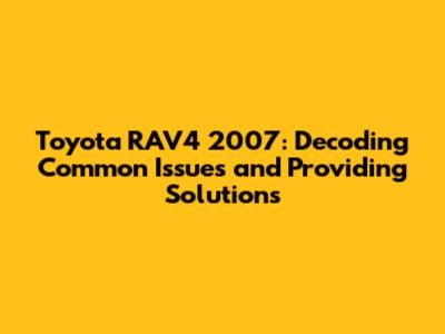 Toyota RAV4 2007: Common Problems & Solutions