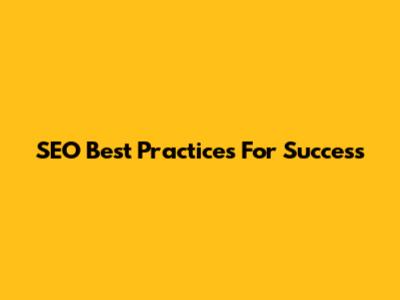 SEO Best Practices For Success