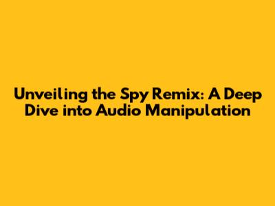 Unveiling The Spy Remix: A Deep Dive Into Audio Manipulation